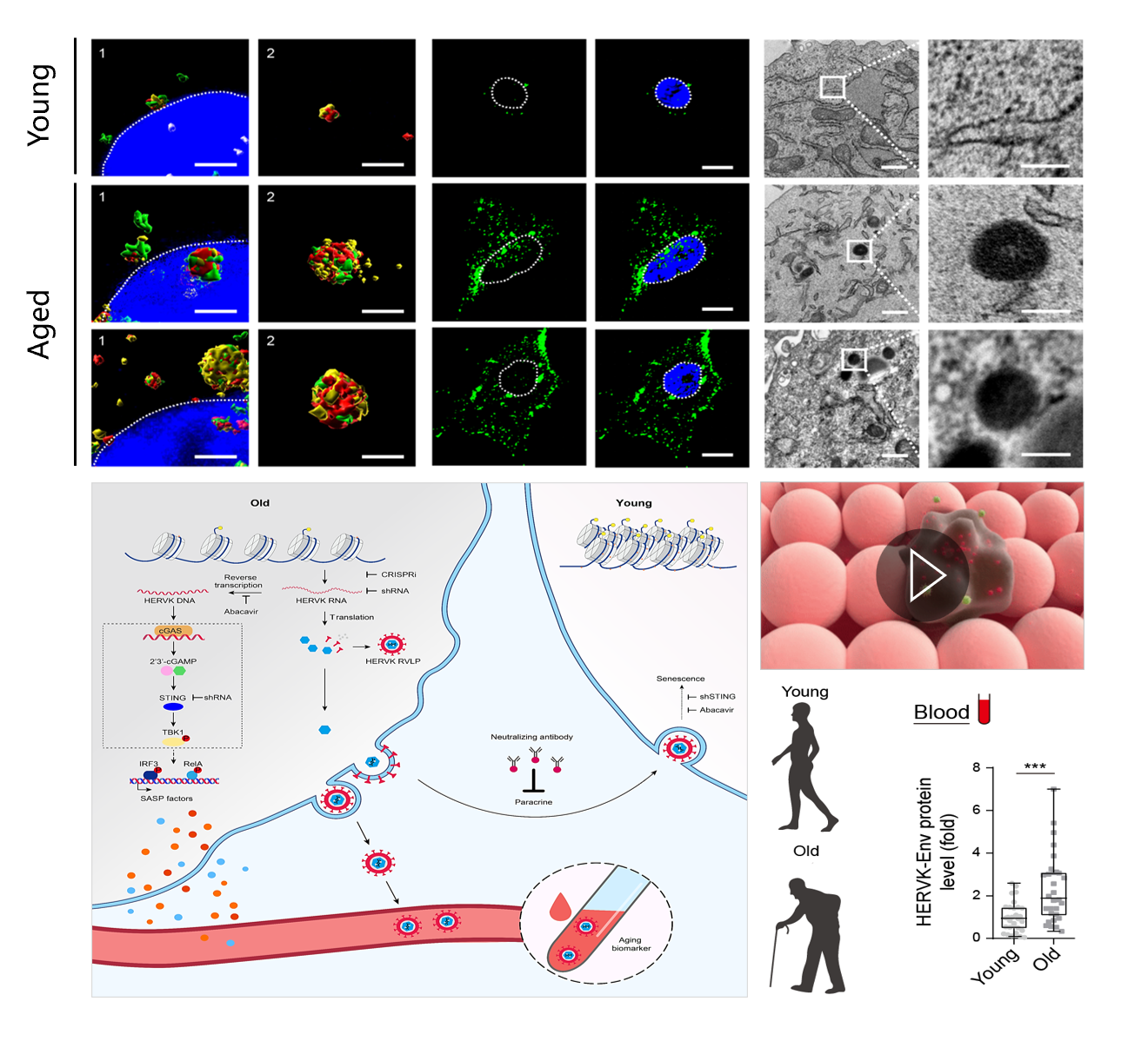 本研究利用多学科交叉手段,首次揭示了人类基因组中沉睡的古病毒由于表观遗传失稳在衰老过程中被再度唤醒,进而驱动细胞和器官衰老的机制。本研究提出古病毒复活介导衰老程序性及传染性的新理论,且创新性地发展出阻断古病毒复活以实现延缓衰老的多维干预策略。