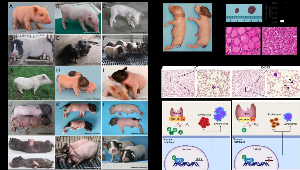 本研究通过化学诱变进行猪全基因组水平的随机突变和表型分析,建立了较大规模的突变体,筛选到了影响骨骼发育、肌肉发生、血细胞再生、行为、毛色等猪重要性状的功能基因和突变家系,促进了猪在生物医学中的应用。