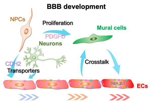 (示意图:神经细胞调控BBB发育的关键机制)
